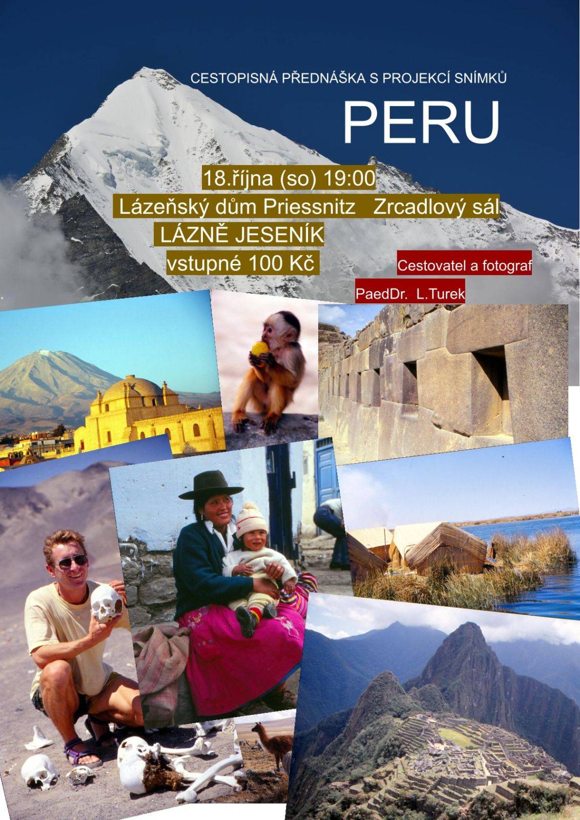 | 18.10.2025 od 19:00 do 20:30 hod. Priessnitzovy léčebné lázně a.s., Zrcadlový sál, Jeseník | MapaCestopisná přednáška PaedDr. Libora Turka. Vstupné 100 Kč. |