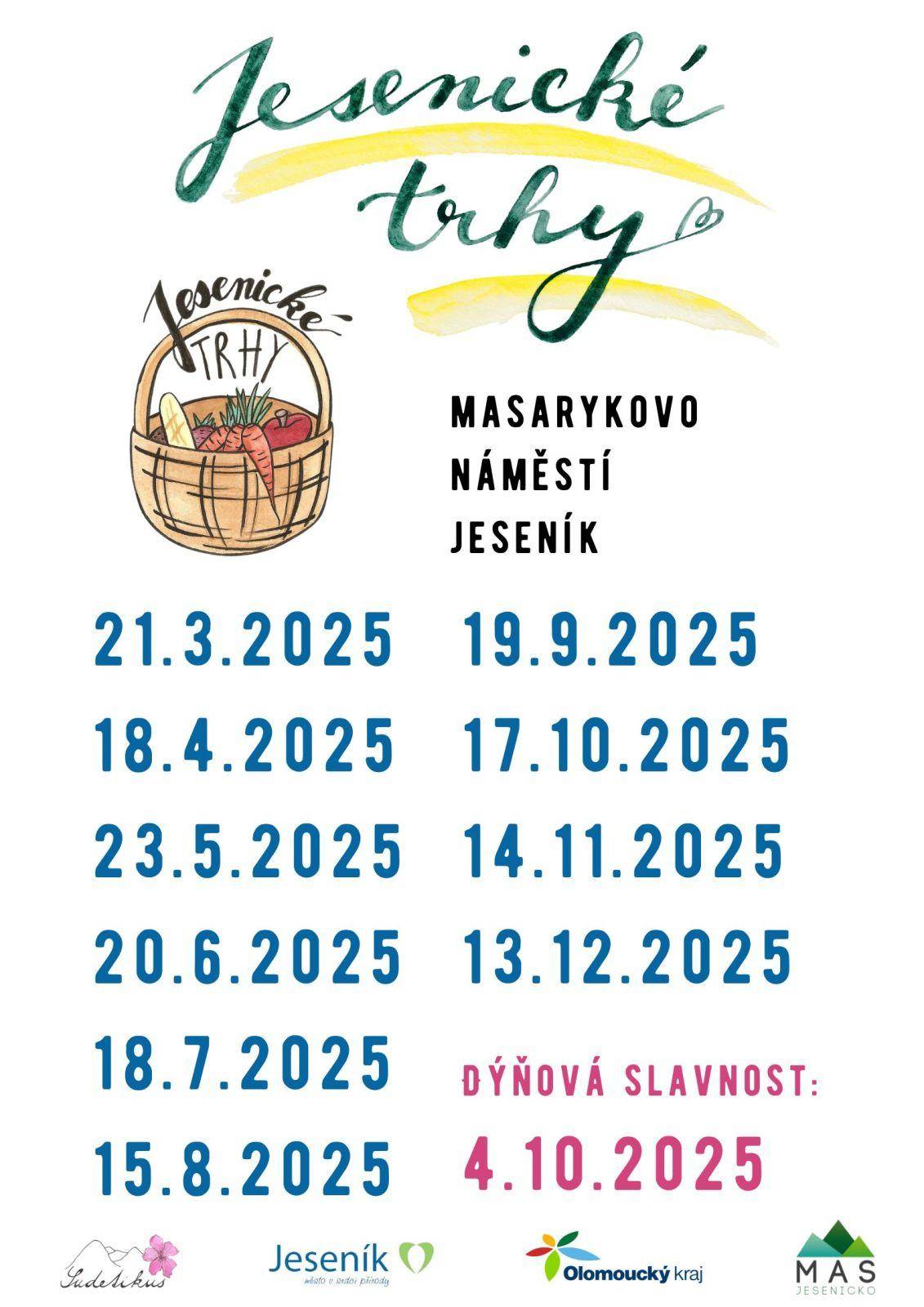 Jesenické farmářské trhy (Trhy) Od 21.03.2025 09:00 do 13.12.2025 17:00 hod. Masarykovo náměstí, Jeseník | Mapa Oblíbené trhy s regionálními potravinami, řemesly a se zajímavými produkty z Jesenicka i širšího okolí se blíží! | |