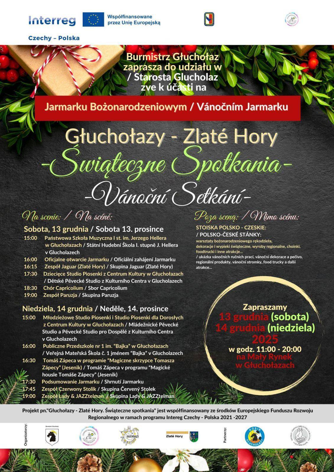 Poslední změna: 03.12.2025 | sobota13.prosince GLUCHOLAZY- ZLATÉ HORY - Trhy Od 13.12.2025 15:00 do 14.12.2025 19:00 hod. Mały Rynek w Głuchołazach, Głuchołazy | Mapa Swiateczne Spotkania - Vánoční Setkání Další trhy