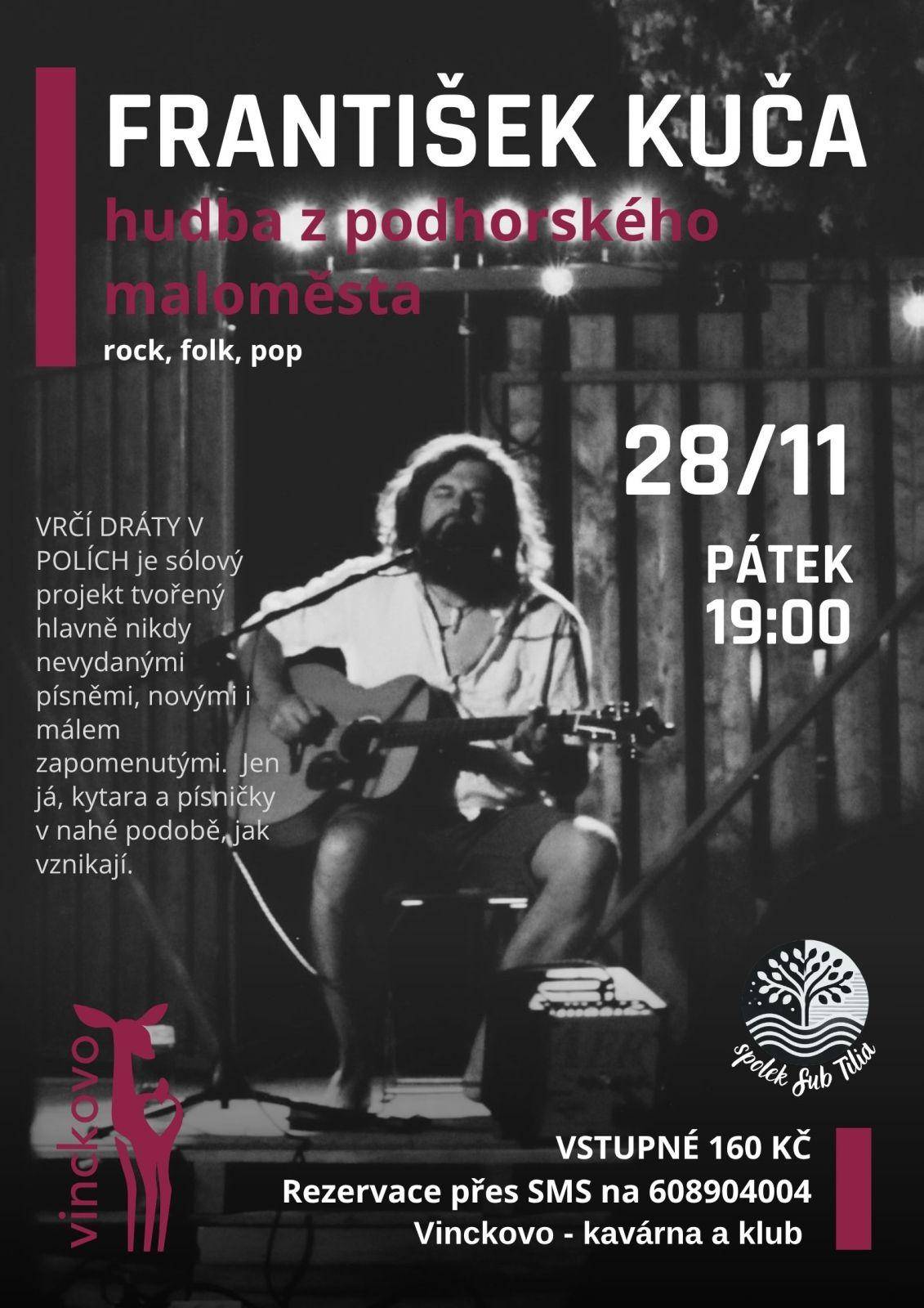 Písně z podhorského maloměsta, v nichž se mísí rock/folk/pop v podání kytaristy-textaře a redaktora ČRO. Vstupné 160 Kč.