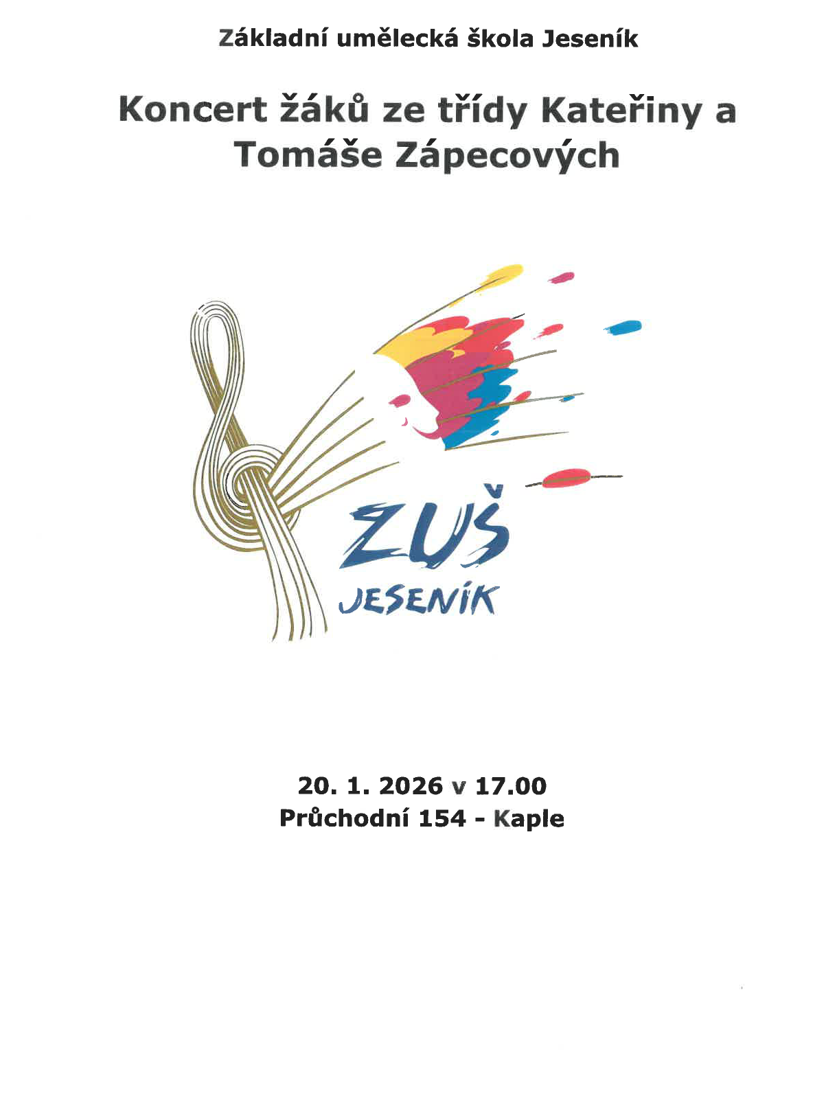 Koncert žáků ze třídy Kateřiny a Tomáše Zápecových - Koncerty 20.01.2026 od 17:00 do 19:00 hod.