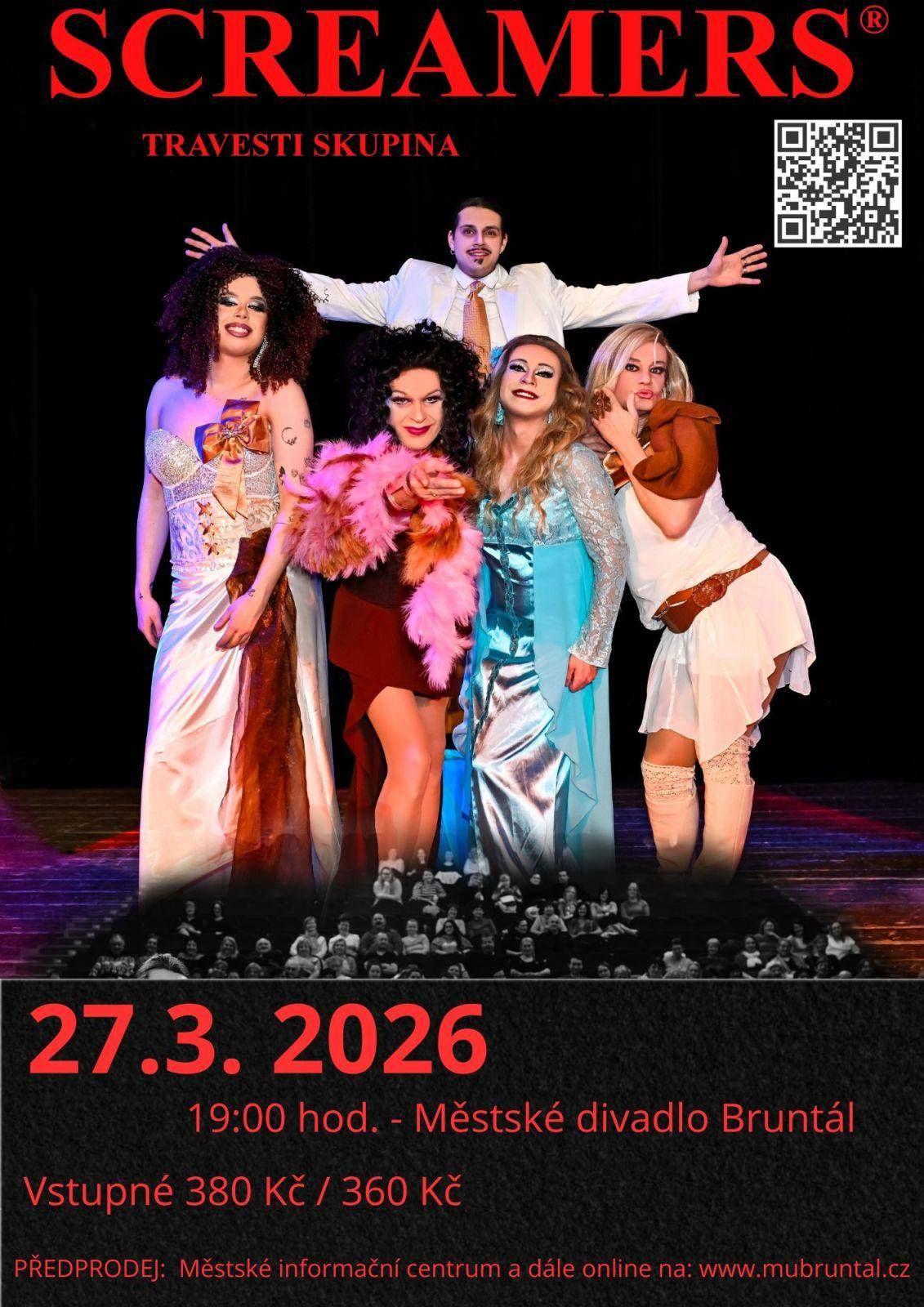 Show travesty divadelní skupiny Screamers. Pořádná dávka humoru, třpytivých kostýmů, tance a známých písniček.